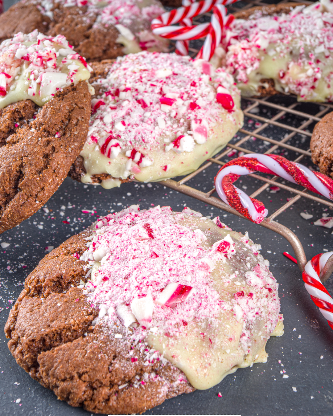 - For extra holiday flair: Dip half the sandwich cookie into melted dark chocolate and sprinkle with peppermint.